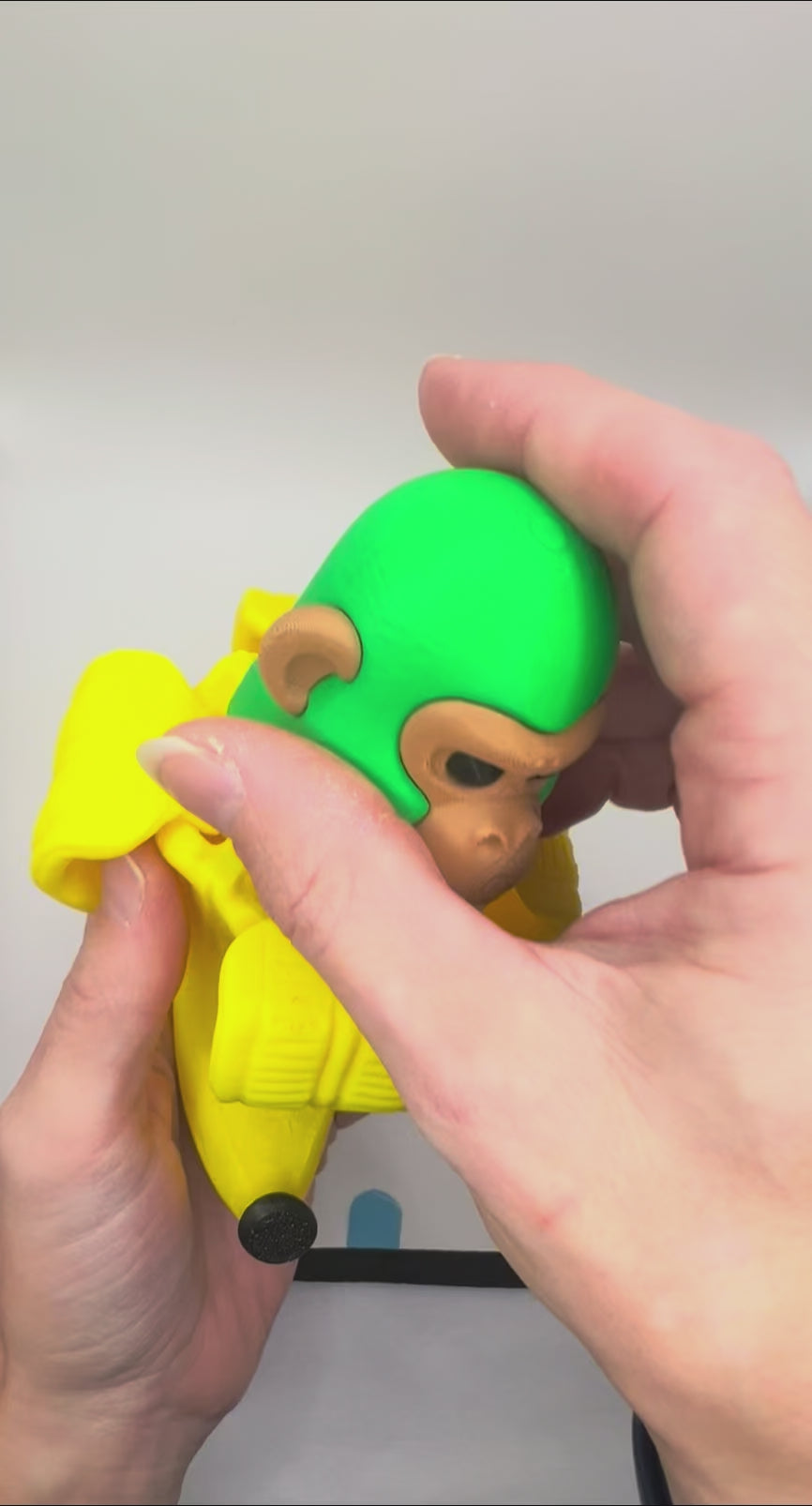 Straight from the 3D printer jungle — it’s our cheeky chimp with a 360° spinning head and banana peels that move up and down like it’s doing the banana boogie! 🍌🕺