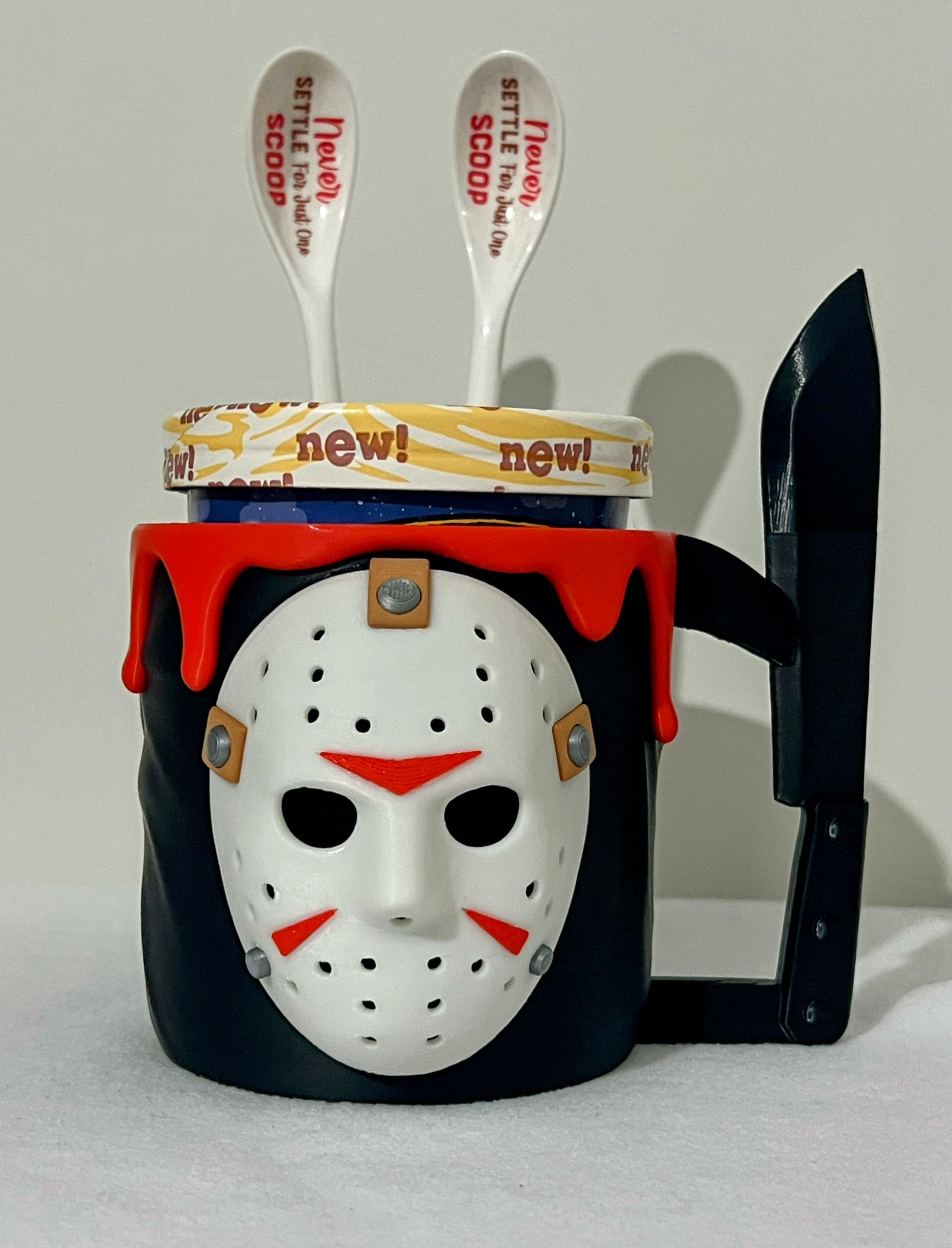 Scoop in style with this Jason Voorhees Ice Cream Pint Holder, designed to fit your favorite Ben & Jerry’s or Häagen-Dazs pint perfectly!
